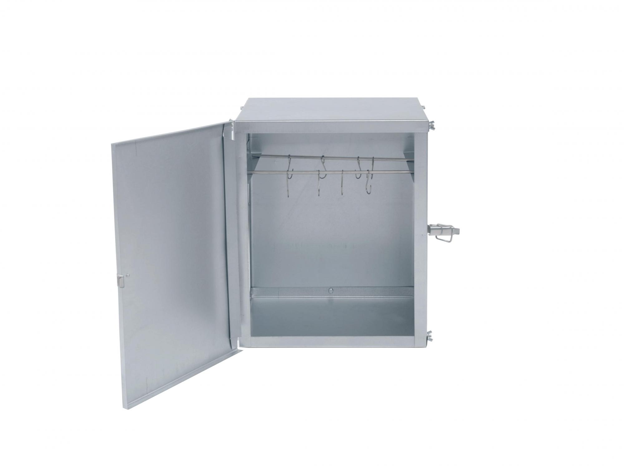 У камеры полностью разборная конструкция. Она не занимает много места при хранении и транспортировке. С одной стороны, камера для копчения мобильна и компактна, а с другой, вмещает до 20 кг мяса. В собранном состоянии ее объем — 50 л. Продукты можно подвешивать на крючках, которые уже включены в стандартную комплектацию.