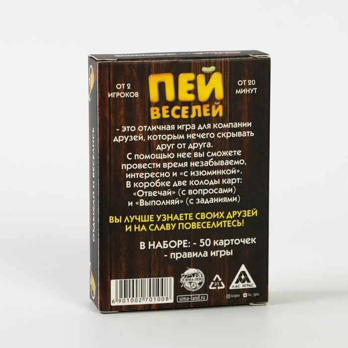 Купить игра для компании "пей веселей" 50 карт от 180 руб. с доставкой до пункта выдачи в Острогожске. Интернет магазин ДекаМаркет. Оплата при получении.