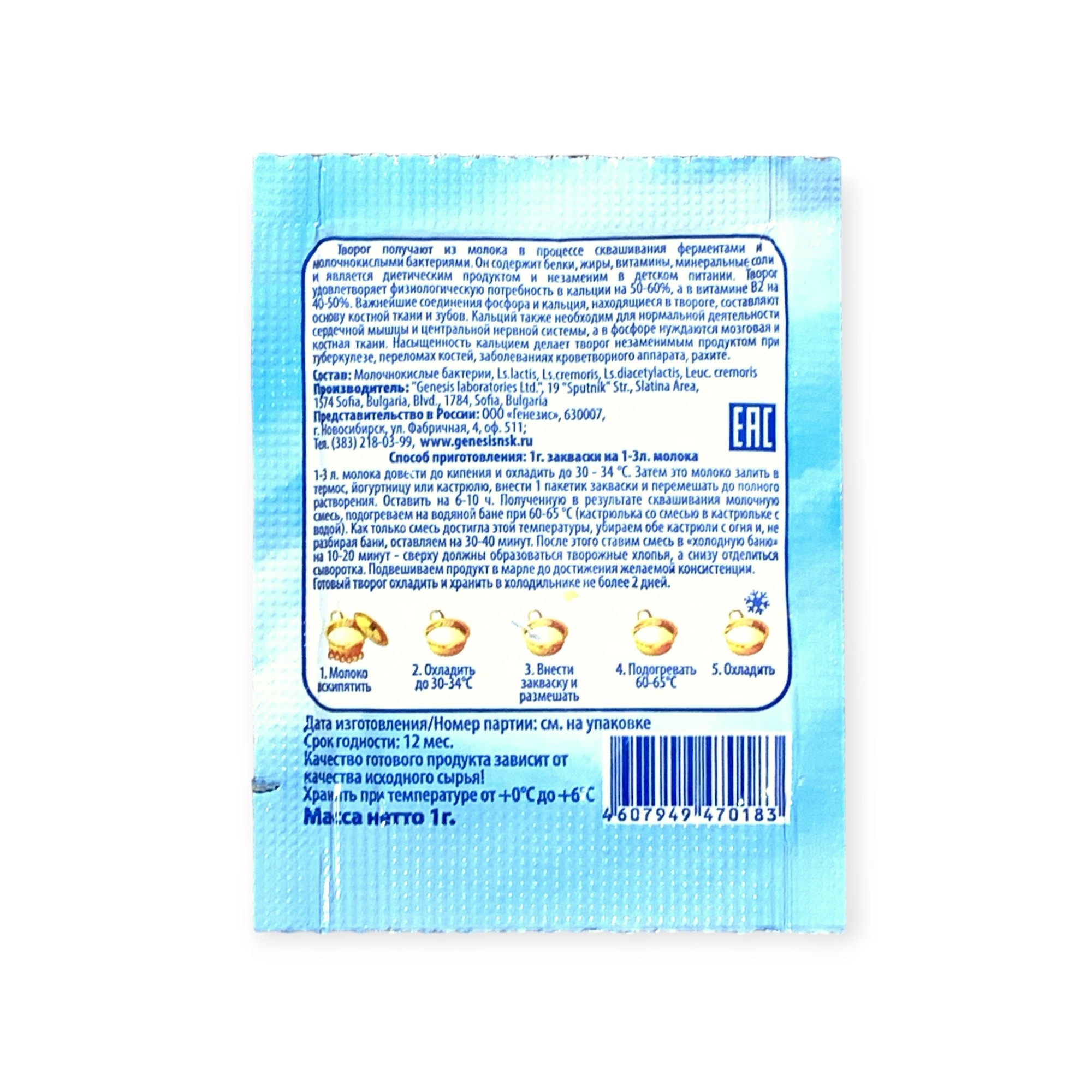 Закваска Творожок Genesis, 1 пакет от 100 руб. с доставкой. Пункт выдачи в Острогожске. Интернет магазин по сыроделию. Всё всегда в наличии.